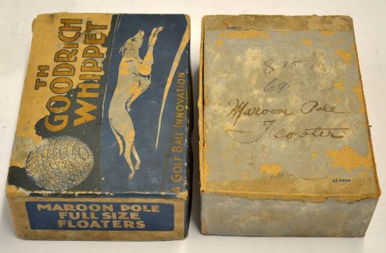 Golf Ball Box c.1915- scarce The B F Goodrich Co. ltd "The Goodrich Whippet" golf ball box for Maroon Pole Full Size Floater produced in 1915 - with removable lift off lid - overall condition some splits to the top and bottom edges - overall 14 x 10cm