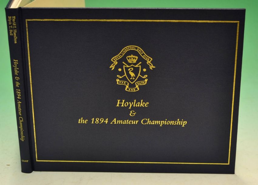 Hamilton, David & Bell, Blyth - signed "Hoylake & the 1894 Amateur Championship" Publishers Presentation Copy publ'd privately 2001- signed by both authors to the main title page - ltd ed 316/500, Grant Books, bound in blue cloth and gilt title c/w 1894 Amateur Championship Draw Result Sheet to the inside back cover (VG)