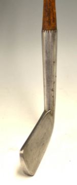 Carrick heavy straight blade metal putter c.1880 - with thick top line and sharp neck crease and wide deep knurling to the 4.75" hosel - the head stamped with Carrick X and straight line logo c/w fine original tan hide grip with thick underlisting