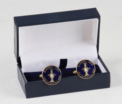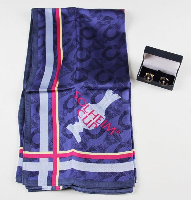 2000 Solheim Cup official team players' wives silk scarf & men's cuff links - played at Loch Lomond cuff links in presentation box (2)