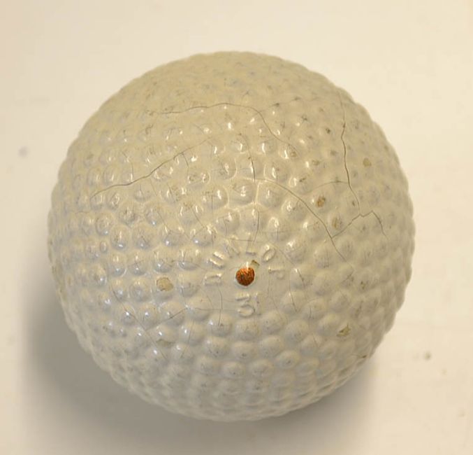 Fine Dunlop 31 bramble pattern rubber core golf ball - with orange spot and makers name to the poles - unused note small hairline surface crack and slight cover damage
