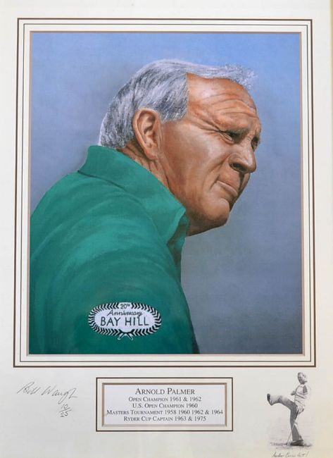 Bill Waugh signed colour golf print: Arnold Palmer Open Champion 1961 & 1962 - limited edition 10/25 signed in pencil by the artist to the border - print measures 49 x 39cm - mf&g