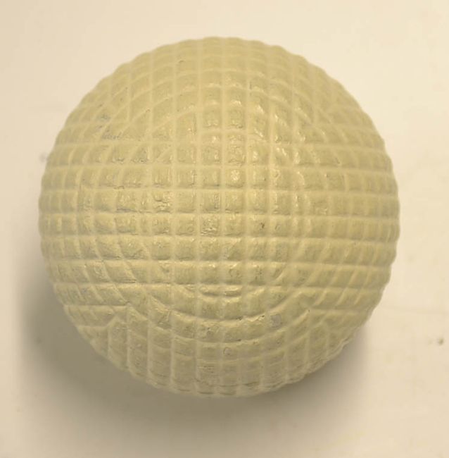 Fine Line mesh pattern guttie golf ball c.1895 - retaining all of the original white paint appears unused