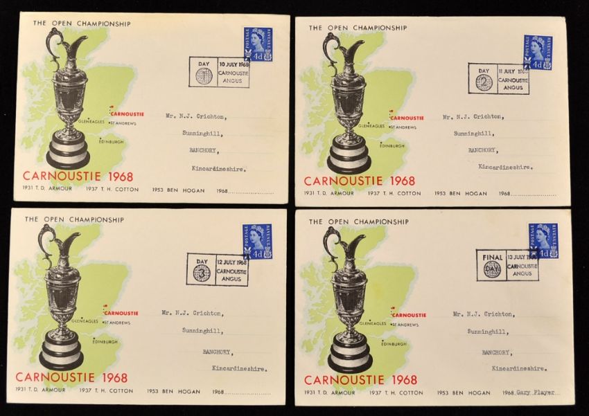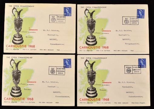 1968 Carnoustie Open Golf Championship Set of First Day Covers (4) - from Day One to Final won by Gary Player for the 2nd time (G)