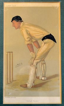Hylton Philipson 'Oxford Cricket' Original Vanity Fair Supplement Colour Print by Spy published by Vincent Brooks, Day & Son, dated June 29th 1889, together with three other cricket prints, General view from Playing Fields', England v Australia at Lords, 1886' and another, all framed and glazed (4)