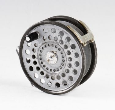 Hardy St. Andrew alloy salmon fly reel: 4" dia fitted with heavy duty U shaped line guide, rim tension regulator, correct ribbed alloy foot, overall wear