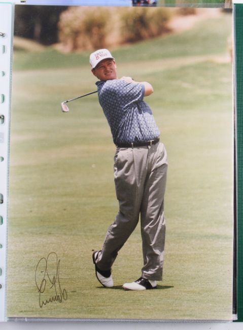 Collection of Major and other Golf Winners signed colour press photographs (53) - Arnold Palmer, Tom Watson, Nick Faldo, Ernie Els, Ian Woosnam, Colin Montgomery, Bernhard Langer, Martin Kaymer, Sandy Lyle, Nick Price, Ian Baker Finch, Eduardo Romero, Don January, David Toms, Hal Sutton, Loren Roberts, Corey Pavin, Steve Pate, Jerry Pate, Johnny Miller, John Cook, Chad Campbell, Mark Calcavecchia, Keegan Bradley, Rich Beem, Chip Beck Christie O'Connor Jr, et al all contained in a loose leaf folder