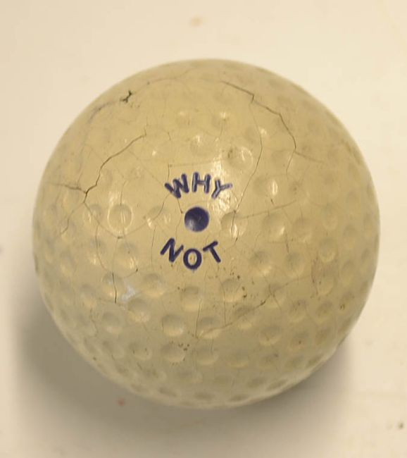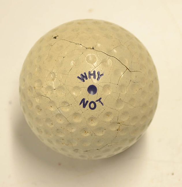 Fine "Why Not" recessed golf ball - with good clear stamp marks to both poles - appears unused but has various minor hairline surface paint cracks
