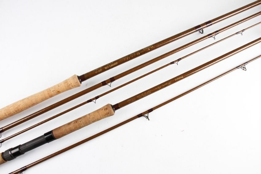 2x Daiwa Osprey Salmon Graphite Rods Rod - 15ft 3pc graphite coil fly rod line 10-11 with fuji style butt guides; and 11ft 2pc graphite coil spinning rod casting wt 10-40 - both very lightly used - both in mobs