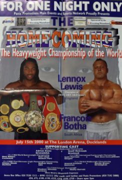 Boxing Poster - 2000 Lennox Lewis v Francois Botha 'The Homecoming' The Heavyweight Championship of the World, measures 42x59cm approx. in good condition with heavy folds