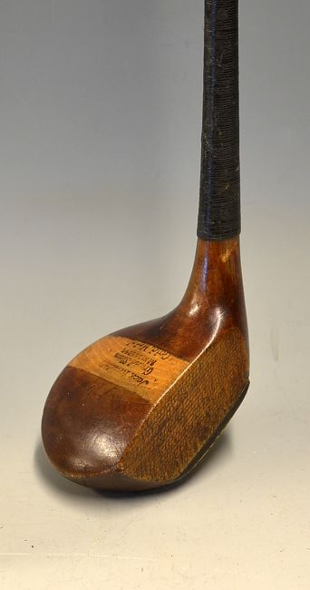 Fine J Randall Sundridge Park Pat Grand Slam Gold Medal striped top persimmon brassie - c/w maker's shaft stamp below the leather grip with underlisting.