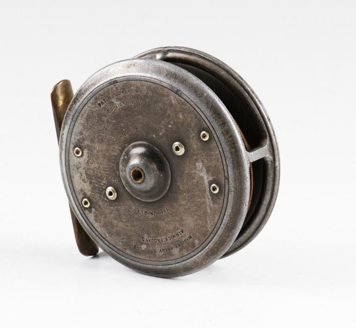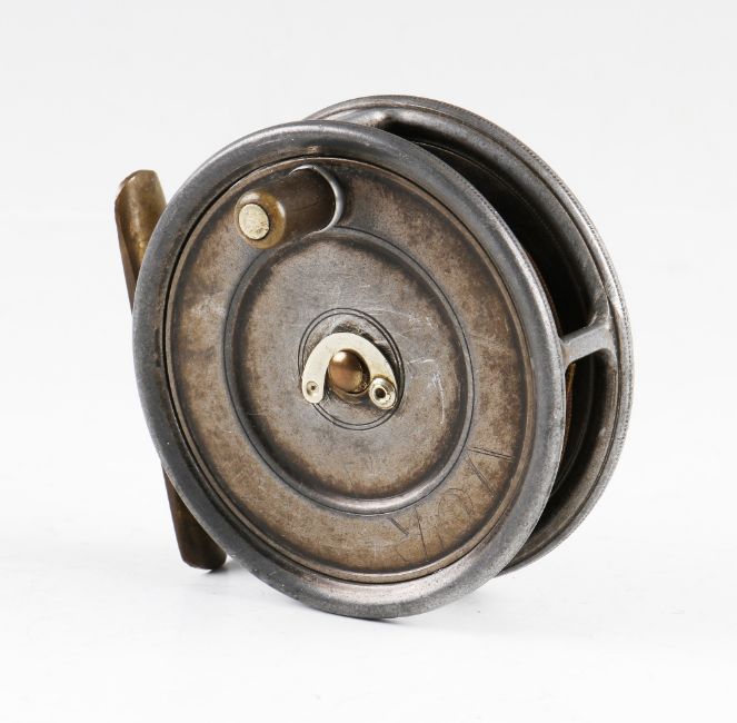 Hardy Bros "The Uniqua Fly Reel" Dup Mk. II trout alloy fly reel c. 1930's - 3 1/8"dia, brass foot, double check mechanism, c/w line - runs smoothly, owners initials scratched to face