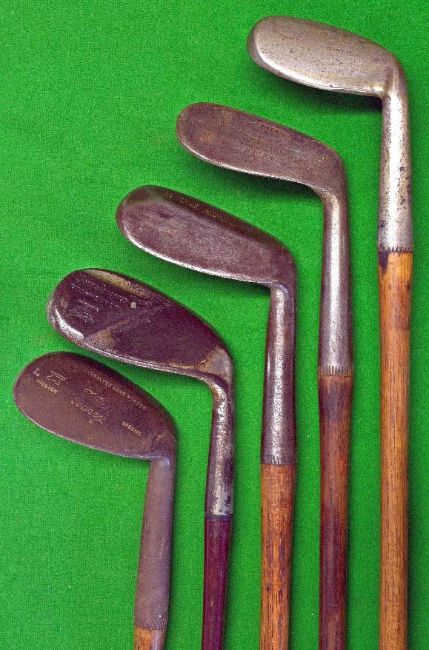 5x interesting niblicks - Gene Sarazen Ogo-Mented niblick, Gibson Westward Ho! Fairlie's anti shank, Ridged back Dreadnought model together with 2 L model by Forgan and Spalding
