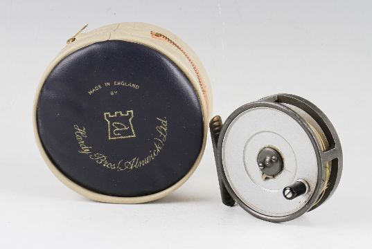Scarce Hardy Bros The Hydra 3 1/8" alloy trout fly reel - with solid face plate , ribbed brass foot very light wear to the limits and comes in makers padded case