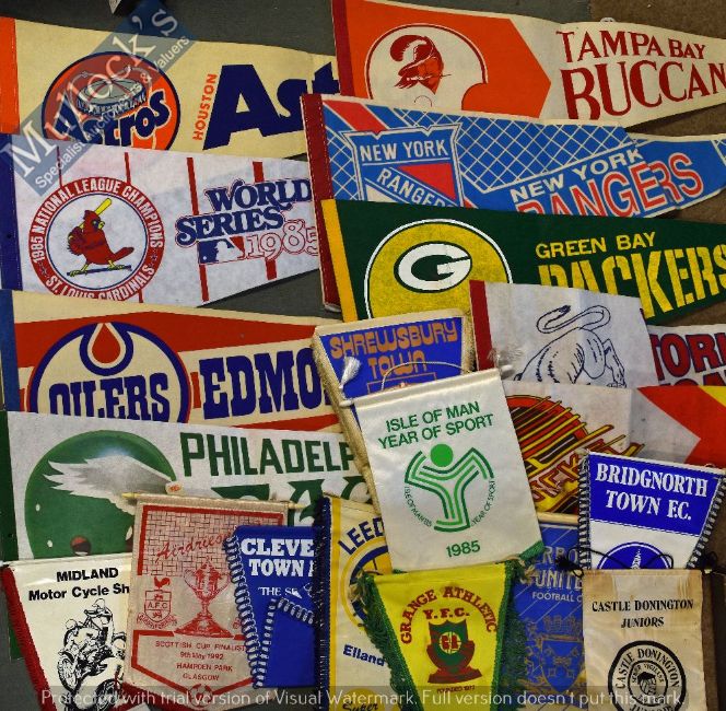 Sporting Memorabilia – Selection of Pennants for various Sports, featuring Football, Speedway, American Football, Baseball and Ice Hockey (20+) Box