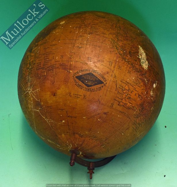 Scarce Antique Globe - 1930s Columbus Erdglobus -Berlin 10inch overall staining and missing stand