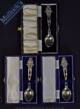 3x British South Africa Police Spoons - Crossed rifles with Force badge to top, all having silver hallmarks and cased 78g total (3)