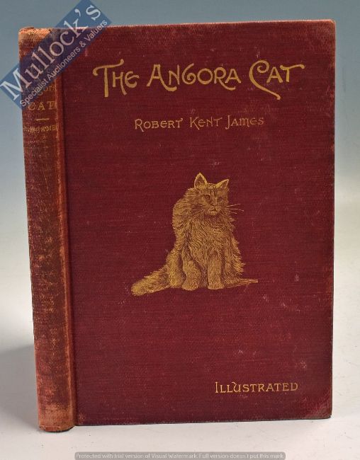 The Angora Cat by Robert Kent James. 1898 Book First Edition. An interesting 102 page book with over 30 full page photographs of cats, detailing “How to breed, train and keep it”. This book has the Ex Libris book plate thus belonged to Desmond Morris author of “The Naked Ape” and other books.  In red cloth board cover with gold tooled illustration on front cover, size 5½” × 8