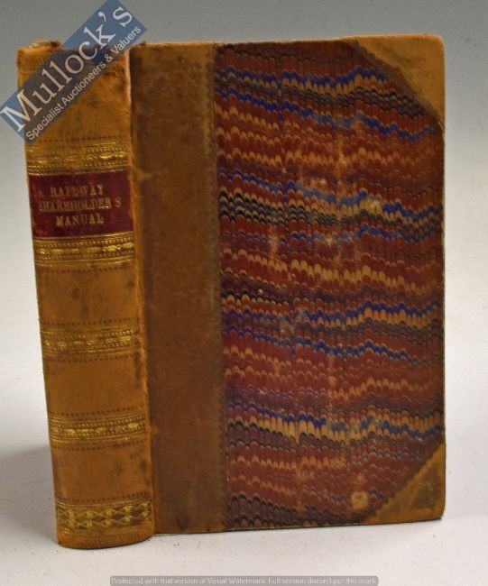 Railwayana - Railway Shareholders Manual by Henry Tuck 1847 Book - A 410 page Reference book listing each railway company in Britain, its mileage, Towns it connects. Date of Royal Assent. Capitalization; Value of various Shares etc. Similar for the many proposed railways in that Railway Mania or boom year. Also a number of foreign railways listed and detailed etc. etc. In original half leather and marble board cover, size 4¼” × 6¾”.