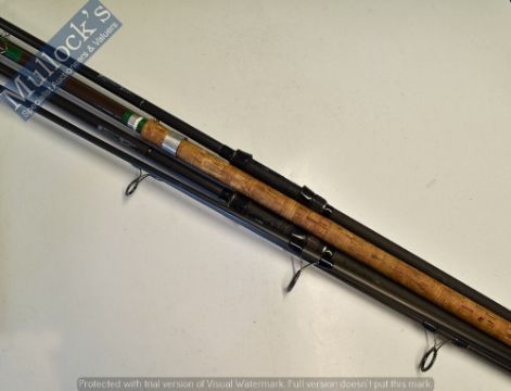 Fishing Rods – Mixed selection to include Warrior Marker 12’ 2 pce carbon rod, lined guides, 2.75lb test curve with screw reel fitting, similar Warrior Spod Rod 12’ 5.5lb test and a hollow glass fibalite 11; big casting carp pike or bass rod, green whipped guides on brown blank, cork handle all good (3)