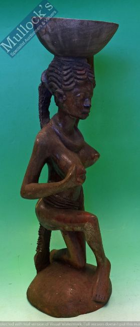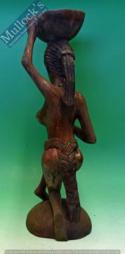African Woman Wooden figure - Large African woman carrying a bowl on her head 54cm high