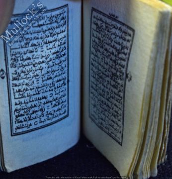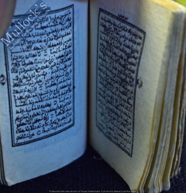 WWI - Miniature Islamic Koran printed for Muslim Soldiers - Koran, printed around 1900. Copies were frequently issued to Muslim soldiers fighting with the Allied troops during World War I. Measures 27mm (1.1") by 20mm (0.75") by 10mm (0.3") thick. Tens of thousands of Muslim soldiers were sent from India (Pakistan) overseas. Religious artefacts, such as Korans and Brahminical threads, were of particular importance to Indian soldiers. A charity, the Indian Soldiers' Fund, was set up in Britain to supply such items. Religious artefacts and ritual occasions, such as the Guru's birthday (for Sikhs) or the end of the fast of Ramadan (for Muslims), perhaps took on greater significance because the men were so far from home. 1,105,000 Indian personnel had been sent overseas as part of the allied forces, 138,000 to France, 657,000 to Mesopotamia (most of which is now contained within modern-day Iraq), 144,000 to Egypt and Palestine. Smaller contingents to Aden, East Africa, Gallipoli and Salonika.