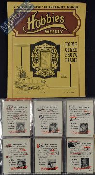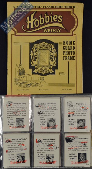 WWII Home Front ‘It All Depends On Me’ Cards plus 5x other wartime cards, plus 2x copies of Hobbies Magazine 1941 and 1942, containing a cut out of a Home Guard picture frame (20+)