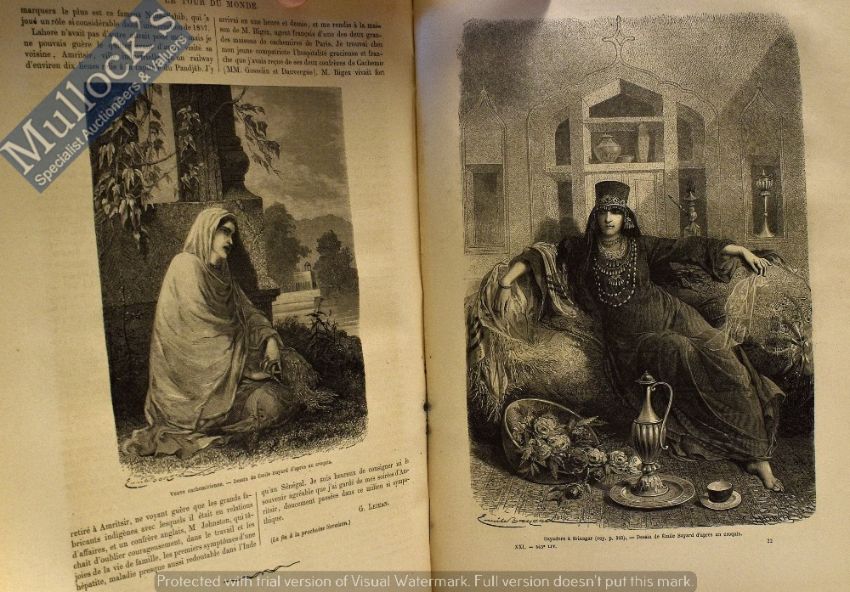 India - Le Tour de Monde - Edouard Charton - The Tour Of The World, 1870 Book - Travel journal Edited by Edouard Charton important black & white illustrations and engravings by greatest artists. 434 pages including a section: Le Pandjab et le Cachemir [The Panjab and Kasmir]. Illustrated with a map of Pandjab and the temples in Amritsar. Pages internally appear in good condition