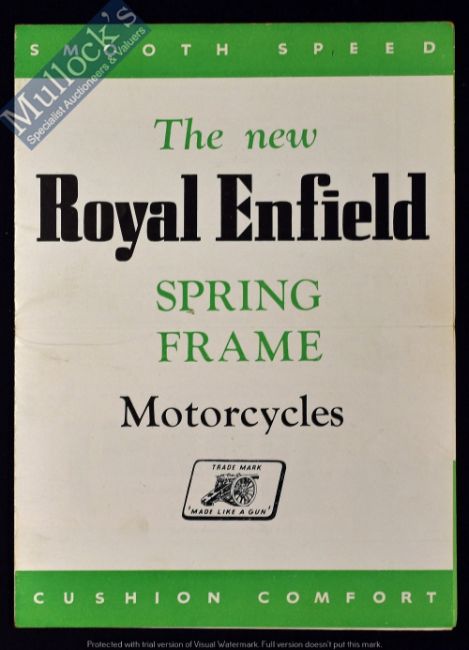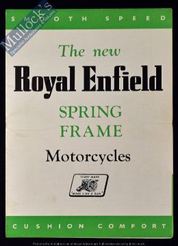Royal Enfield Motor Cycle 1948 Brochure - Large Poster size brochure illustrating and detailing with prices their “Two new models of brilliant design” 500 Twin vertical cylinder & 350 Bullet motor cycles. Black & green printing on semi. loss paper folds out to size 14” × 19”