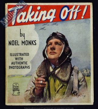 WWII - Taking Off Publication By Noel Monks - Circa 1942- 43. An unusually fine quality publication for that period by Raphael Tuck. A 44 page publication with 32 photographs about the R.A.F.  sub titled “Our Airmen in the making”. In pictorial card cover size 5½” × 6½”.