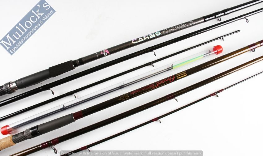 Fishing Rods - 2x carbon feeder rods to include Pro-Performance Carbo 12 ft 4 pc with 2 tips and a Shakespeare Onset Medium Feeder 12ft 3pc with dual tip – both appear unused in CBs