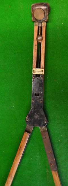 Interesting Pat Detachable Bag Stand - The Crescent Pat No 80 458 with leather lip, brass fastener, and spring operating mechanism for the ash splayed legs – overall 33.5” – in good working order