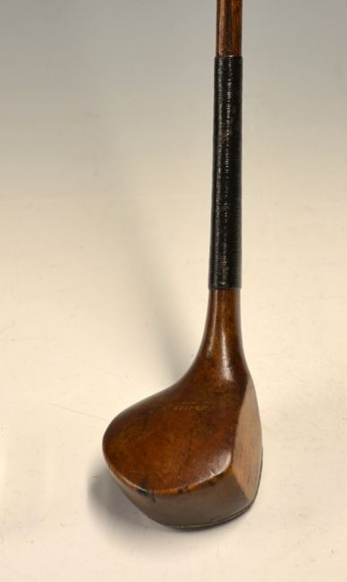 Fine Auchterlonie scare neck brassie – with full wrap over brass sole plate - stamped to the head “Auchterlonie Plum-Bristol” – original hide grip with underlisting