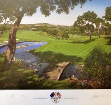 Baxter, Graeme signed Ryder Cup golf print: - 1997 Valderrama Ryder Cup ltd ed no 139/850 - signed in pencil by Graeme Baxter and “Seve” to the boarder –c/w coa on the reverse – mf&g overall 29 x 30”