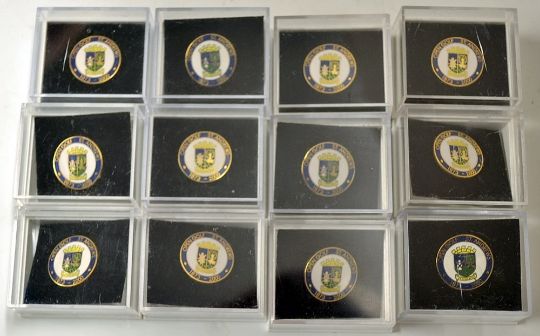 2000 St Andrews Open Golf Championship Enamel lapel badges: 12 in total all in individual boxes