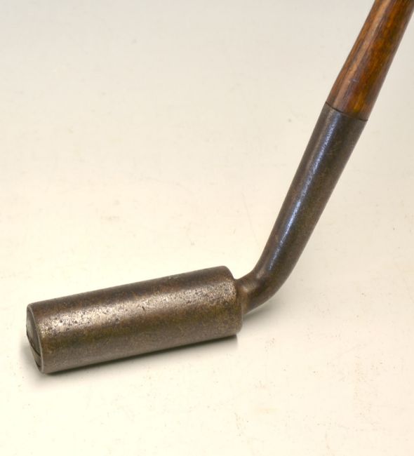 Rare Lloyd Payne Galley Patent Cylindrical Rolling Head Putter – c/w full length leather grip with underlisting – overall 39”. Note Ex Jamie Ortiz Patino Sale lot 319