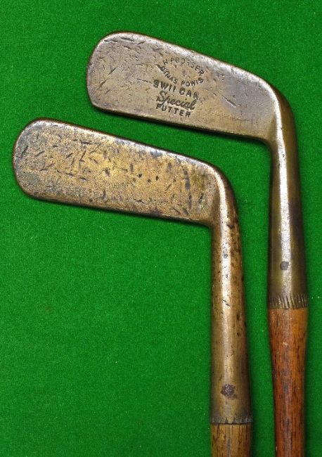 2x Brass Blade putters – Prosser Dinas Powis Swilcan with line and dot face markings together with a Ramsbottom Manchester smooth face straight blade.