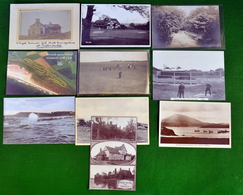 Selection of English, Irish and Scottish golf club postcards from 1905 onwards – Royal Portrush 1919 Club Housesepai photograph, Goswick, Solihull, Holme Next Sea, Girvan, Seamill Ayrshire, Rosapenna Donegal, Wallasey Municipal, and Burton on Trent