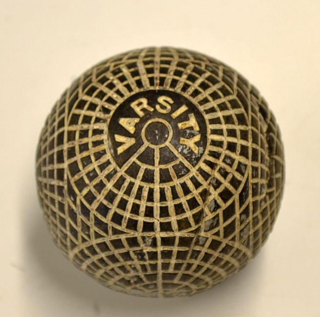 Varsity guttie golf ball c. 1895– stamped clearly to both poles – 4x visible strike marks