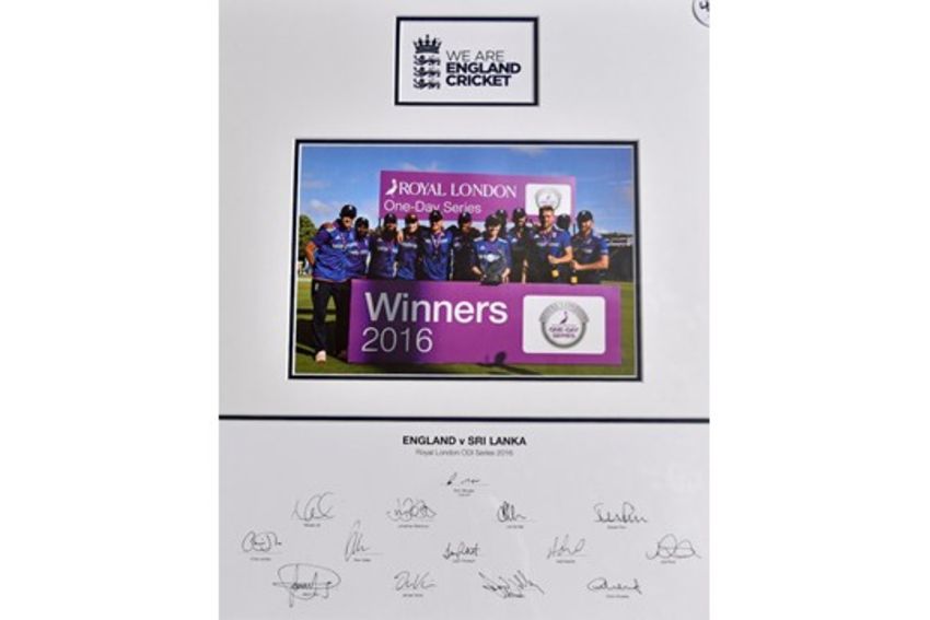 2016 Cricket Signed Display of the England Team England v Sri Lanka Royal London ODI Series 2016 having photograph with a team signed sheet below, framed and glazed.