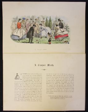 Croquet - Scarce ‘A Croquet Match’ Engraving c.1864 - a period hand coloured engraving by John Leech from Follies of the Year, from Punch’s Pocket Books, together with a page of text, having some fingers marks present to both, otherwise in good condition