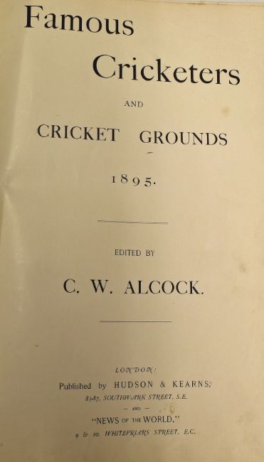 Cricket Book ‘Famous Cricketers and Cricket Grounds’ 1895 Edited by C W Alcock featuring some of the great cricketers from W G Grace having large format photograph with details of each player with gold block front cover