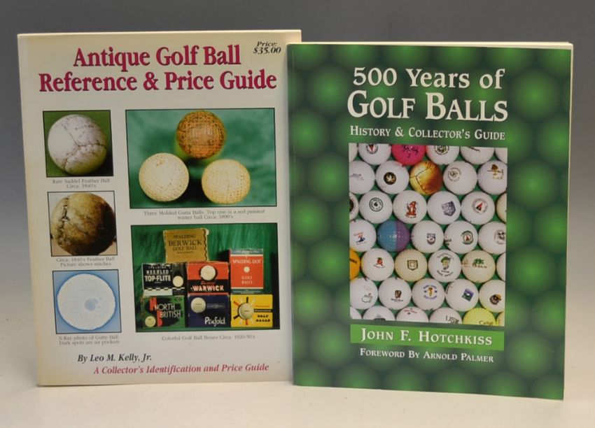Golf Ball Reference Books (2) - Kelly, Leo – “Antique Golf Ball Reference and Price Guide” 1st ed 1993 – original wrappers, appears unread – the first modern book on golf balls and still a good reference guide – tight copy hence (G) and John F Hotchkiss –“ 500 Years of Golf Balls-History and Collector’s Guide” 1st ed 1997 in the original illustrated wrappers overall (G)