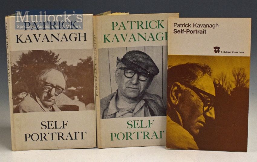 Self Portrait by Patrick Kavanagh 1963 Rare First Edition Book with wrapper and f/p photograph by Philip Pocock showing Kavanagh in a flat cap and stained shirt. Kavanagh objected to the photograph, and the edition was pulped (also two other editions). With a copy of the Second Issue (1964), still described as ‘First Edition’. Also with the Second Edition (1975), with the photographs in sepia. The first issue was never distributed, and only a handful of copies survived. A rare and attractive trio (3)