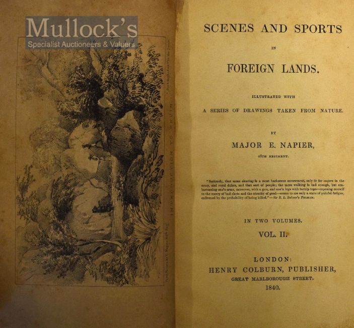 Scenes And Sports In Foreign Lands Books illustrated with a series of drawings taken from nature - By Major E. Napier, 2 volumes, London: Henry Colburn, half leather binding, wear to spine, intact (2)
