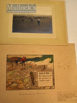 Original French Perrier Advertising Print by Chas Crombie autographed by Percy Alliss (1897 – 1975), Sam King (1911 – 2003), Reg Whitcombe (1897 – 1957), Alf Padgham (1906 – 1966), presented to Inspector R S Channon Southampton County Borough Police and Athletic Club 1944 together with a photograph of St Andrews 18th Hole (2)