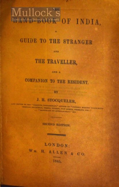 The Hand-Book Of India, A Guide To The Stranger, And The Traveller, And A Companion To The Resident 1845 Book By J. H. Stocqueler Second Edition published 1845 [First published in 1844], slightly revised, updated and expanded according to the Preface, London: Wm H. Allen & Co. half leather binding with gilt title on spine. First and last few pages browned. Inside pages with faint discolouration