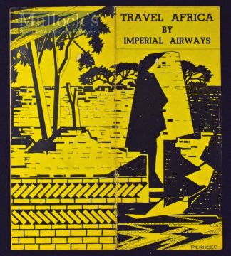 Travel In Africa By Imperial Airways. August 1934 4 page publication illustration aircraft on the Cairo to Cape Town route and detailing fares and times, also connections to London (Croydon Airport). Size 7½” × 8