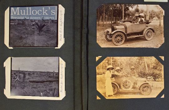Malaya – Photographic Album Selection include family, Malaya rubber plantation at Sungai Manggis, nr Seremban, containing approx. 60 photographs, with information recorded on the backs, has two good motor car views plus approx. 20x postcards from the same source 1909-1920s, contained within album