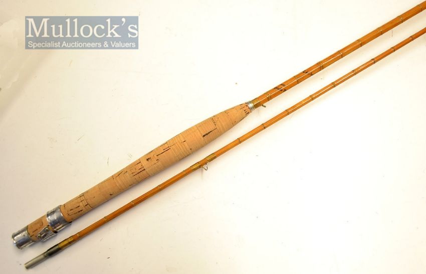 Hardy Bros The C.C De France split cane fly rod – 8ft 11in 2pc with agate lined but and tip guides, alloy sliding reel fittings, cigar shaped cork handle – ser no H19881- some restoration – in mcb